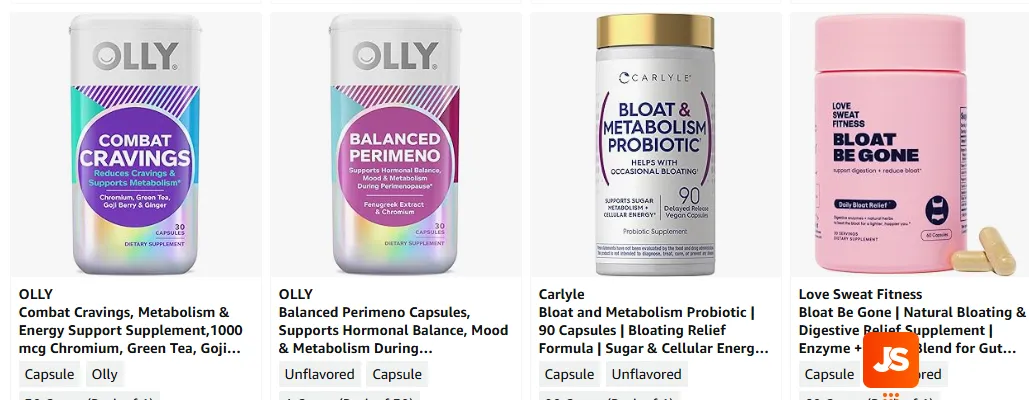 不如把核心关键词、产品功效放在包装最显眼的位置,比如Love Sweat Fitness的“Bloat Be Gone”(消除胀气)、Olly的“Combat Cravings”(缓解嘴馋),让买家一眼就知道产品价值。