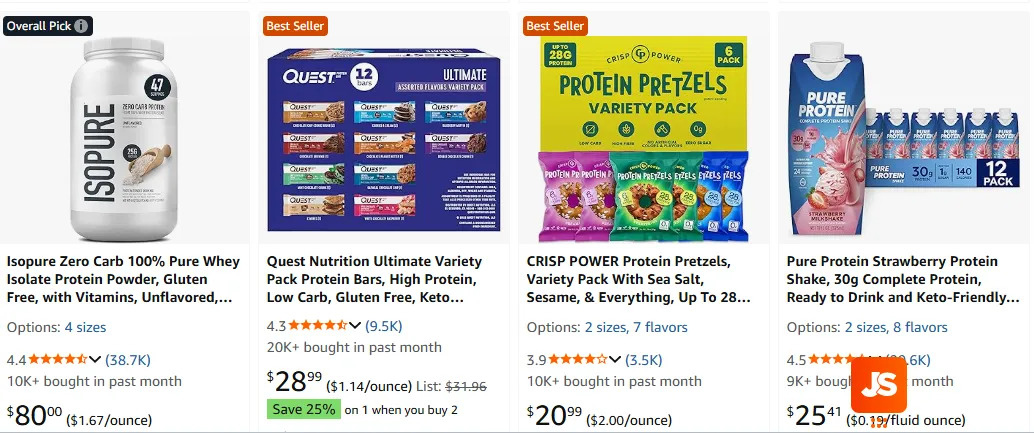 比如卖蛋白粉,标注“25克蛋白质/份,47份”;卖蛋白椒盐脆饼套装,标注“6件装”,卖美妆,可以标注“100ml大容量”;这些数字能瞬间抓住有明确需求的买家。