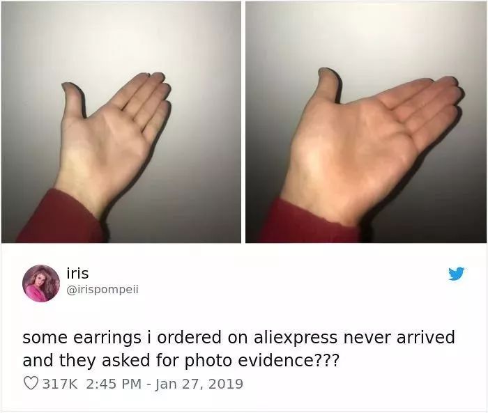 “在阿里下单买了些耳饰,一直没有收到,他们居然还要我拍照证明一下??"