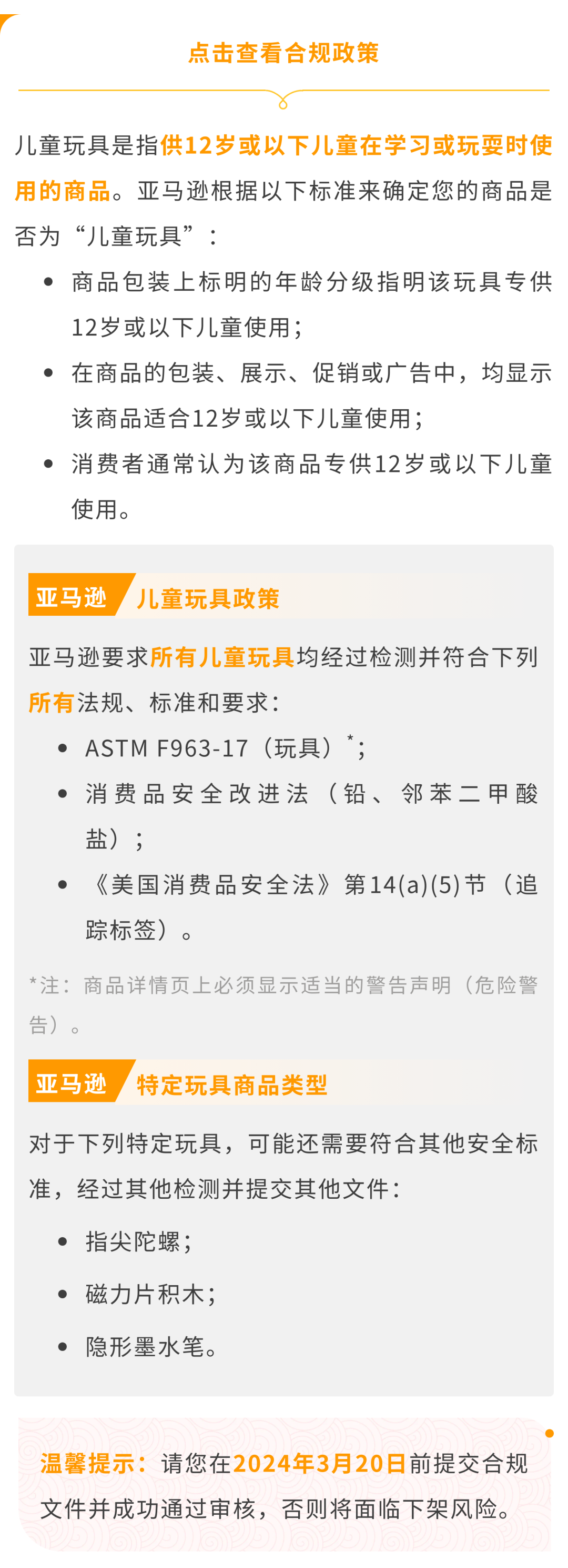 近期,不少美国站、加拿大站、土耳其站卖家陆续收到了亚马逊合规政策要求邮件,对于“水珠”、“眼科药物商品”、“儿童玩具”、“成人活动床栏”、“食品补充剂”和“婴幼儿食品”品类合规要求有更新,请您及时关注!
