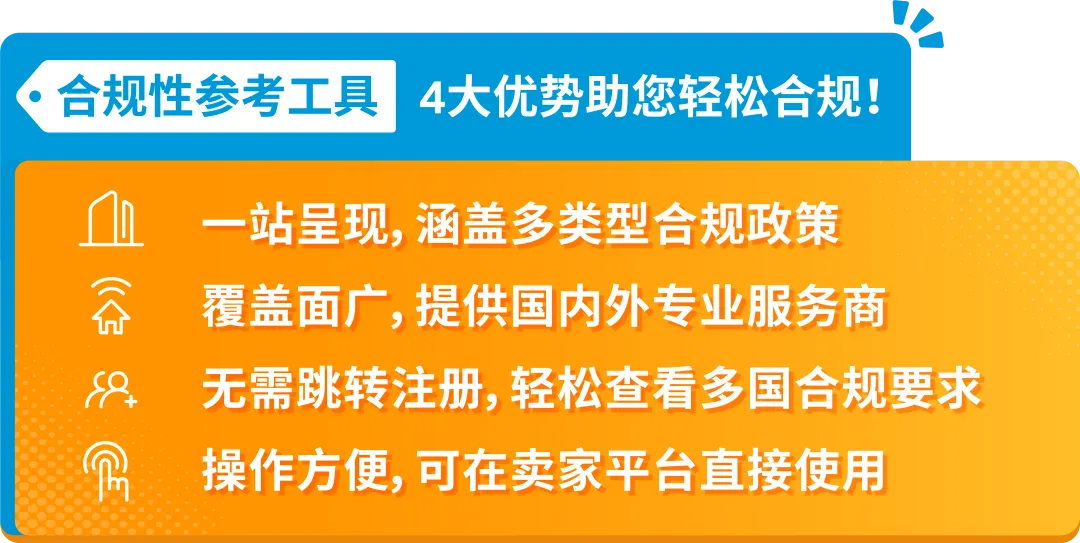 多站点、多品类合规不用愁,亚马逊为各位卖家提供两大实用合规工具,助您有效避坑,顺利应对合规要求!