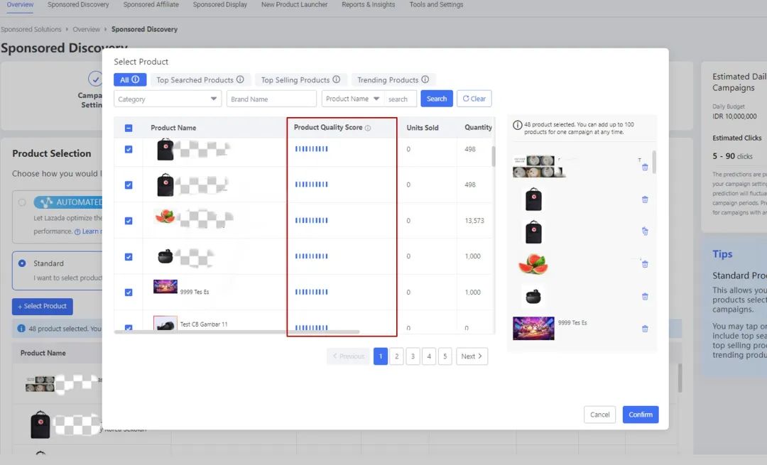 其构成因素主要包括用户的搜索查询量、商品销售量和点击历史记录、买家评分、PDP上的商品标题详细信息以及其他信息(退货率/店铺信誉…) 等。商家并不能在后台看到各商品的实际商品质量分分值,但店铺内的热销或者头部的商品往往都是质量分更好的品。因此我们也建议商家优先推广店铺的头部