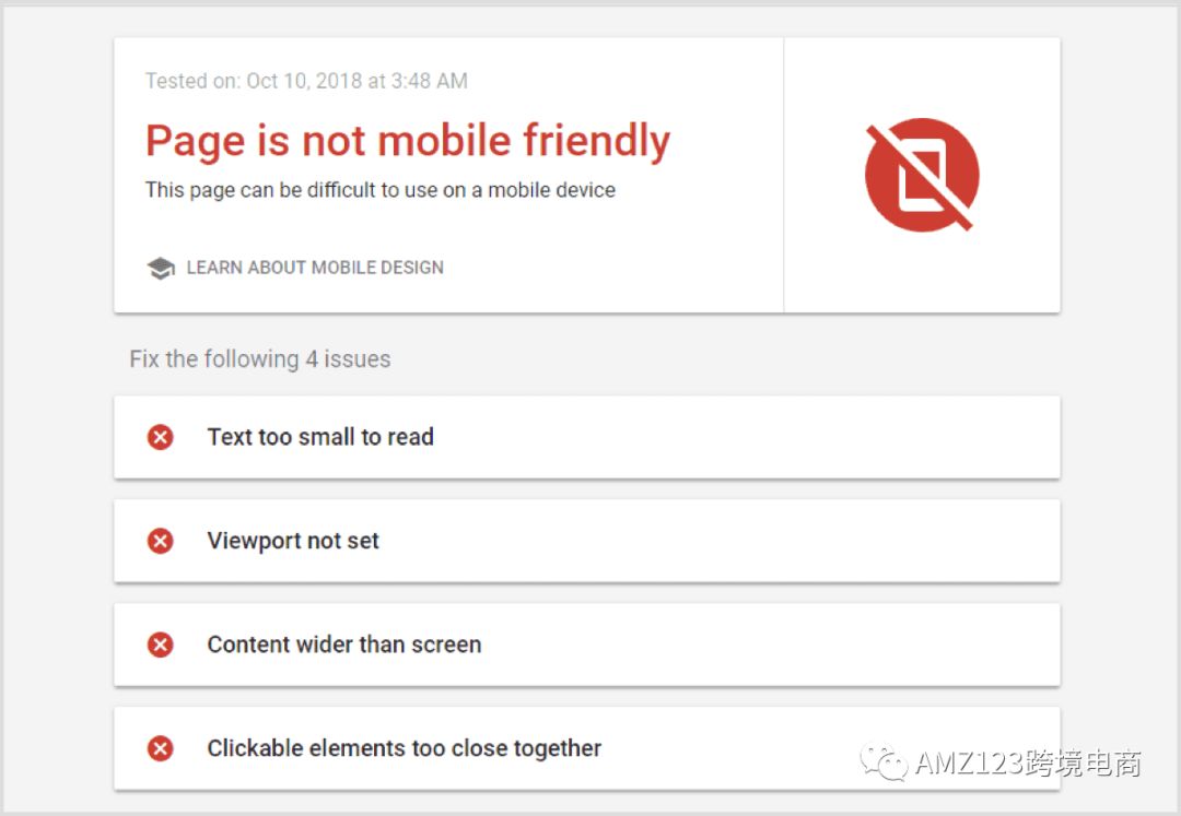 不要忘记为移动用户设计着陆页。据Statista称,75%的Facebook用户通过移动设备访问该平台,因此优化移动端着陆页至关重要。一个很好用的着陆页移动端优化工具是Google Mobile-Friendly Test,只需输入着陆页的网址,等待评估完成,然后查找优化建议就可以了: