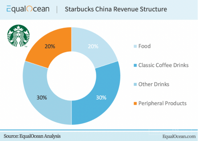 此外,星巴克自进入中国以来一直保持着3:3:2:2的收入结构。30%的收入来自经典咖啡饮品;30%的收入来自其他饮料,如柠檬水、星冰乐;20%的收入来自星巴克门店销售食品;剩下的20%来自周边产品,如杯子、袋子。