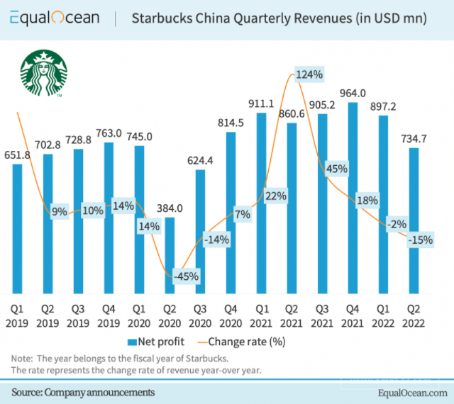 星巴克以花里胡哨的产品和驾轻就熟的营销策略,为自己提供了一条平稳的增长之路。这么看来,星巴克似乎在中国混得风生水起。然而,其最新出具的财务数据却并不像星巴克表面的那样光鲜亮丽。从截至2022年4月3日的最新财报来看,2022年第二季度星巴克中国市场营业收入同比下降14%。可比店面销售额下降23%,可比交易额下降20%。