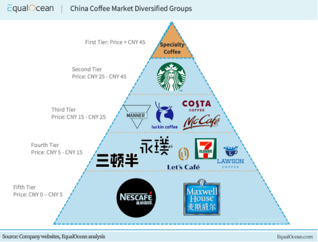 星巴克于1999年在中国北京开设了第一家咖啡店,是最早进入中国咖啡市场的几家咖啡品牌之一。在中国咖啡市场打拼了20多年,星巴克早已摸清了自己在中国市场的清晰定义。与其他国家市场不同,星巴克在中国的核心客户以中产阶级为主,一二线城市的精英和商务人士是星巴克的主要目标。