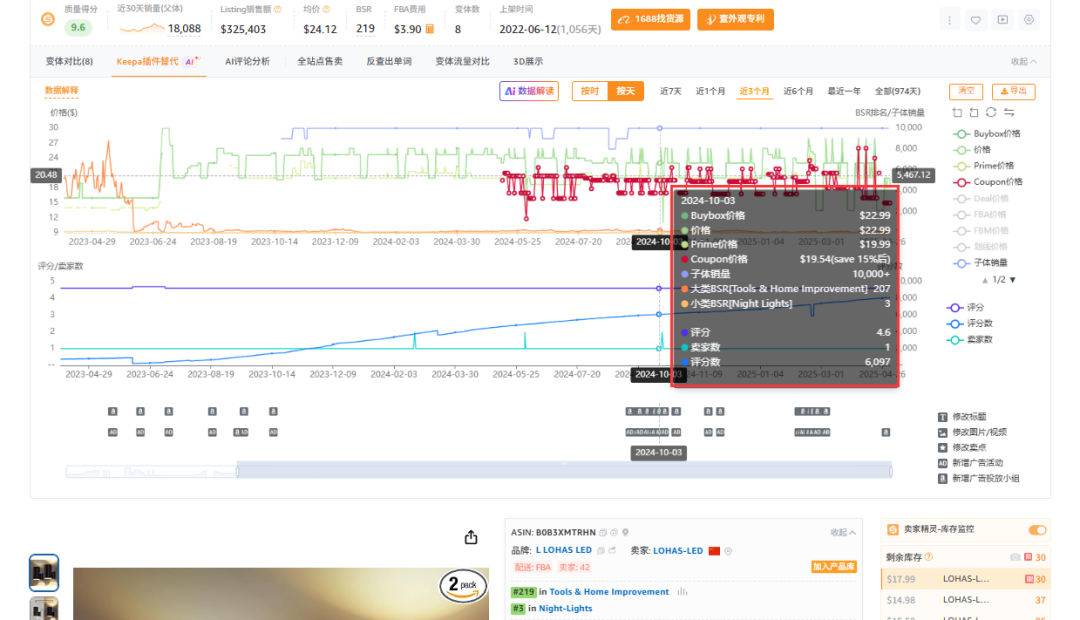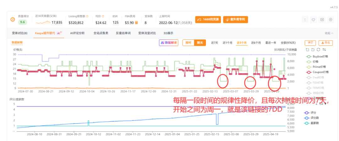 - 通过卖家精灵keepa插件查询历史秒杀记录,分析主要竞品7dd排期规律(如每周一固定报秒杀),提前1周通过降价或者调高广告竞价抢占流量/关键词位置。