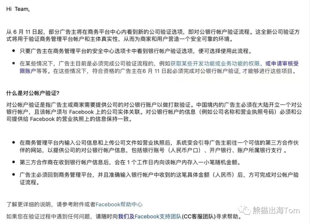 Facebook BM将实施对公账户验证与对公验证常见问题解答