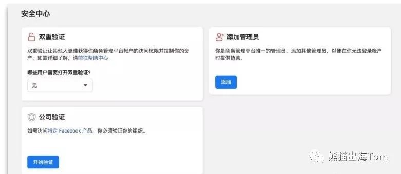 前往商务管理平台的安全中心版块,开始银行帐户验证流程。