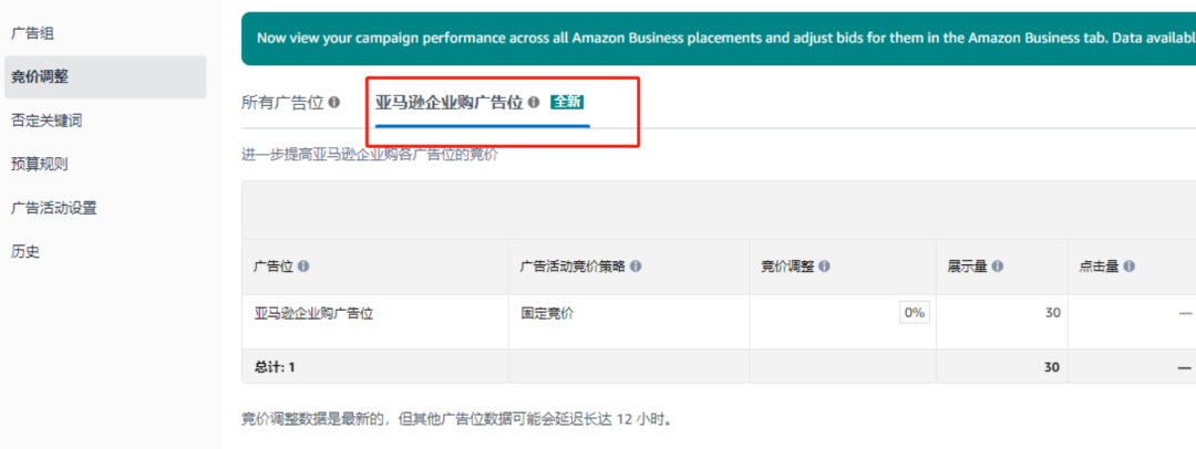 除了在广告位那里,在广告活动设置里也已经出现进一步提高亚马逊企业购各广告位的竞价的功能了。