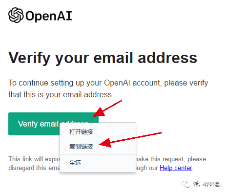 进入邮箱,复制验证链接。