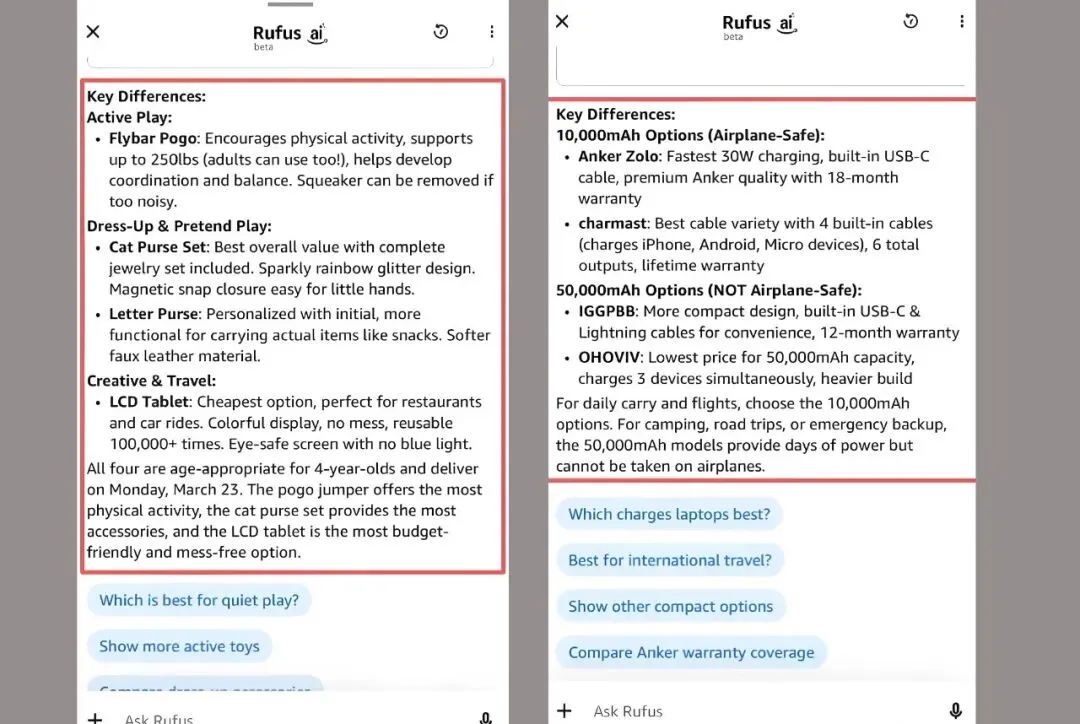 美国站移动端前台,悄悄上线了由Rufus AI驱动的Compare对比按钮!