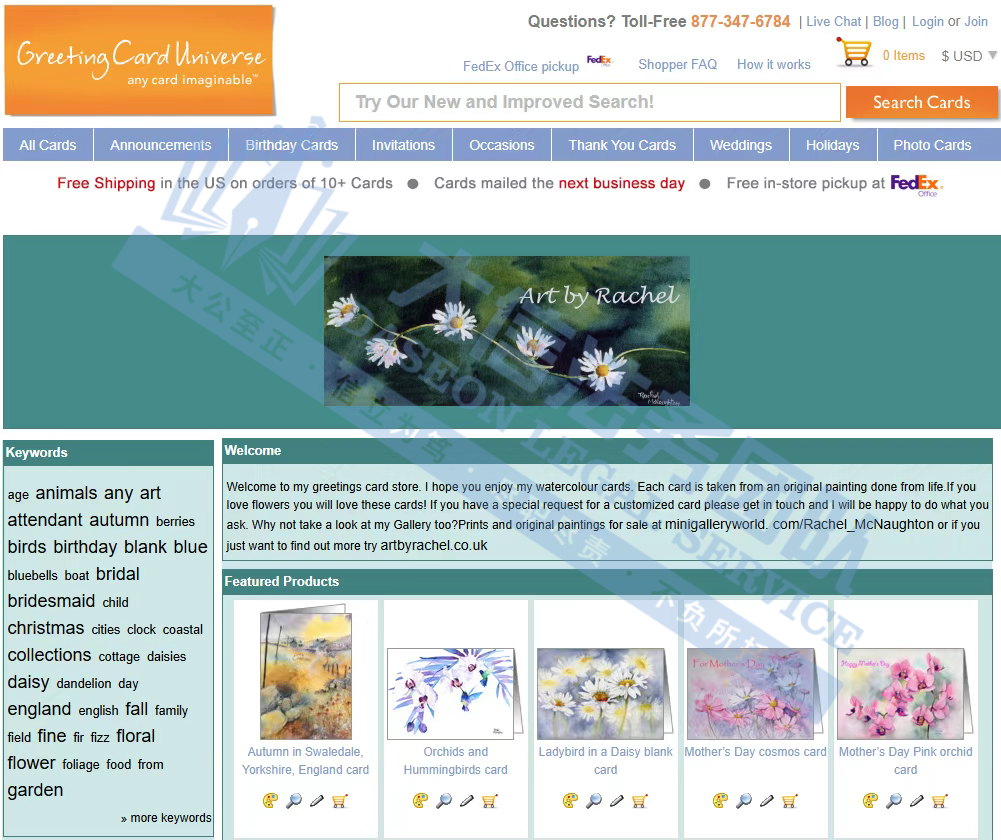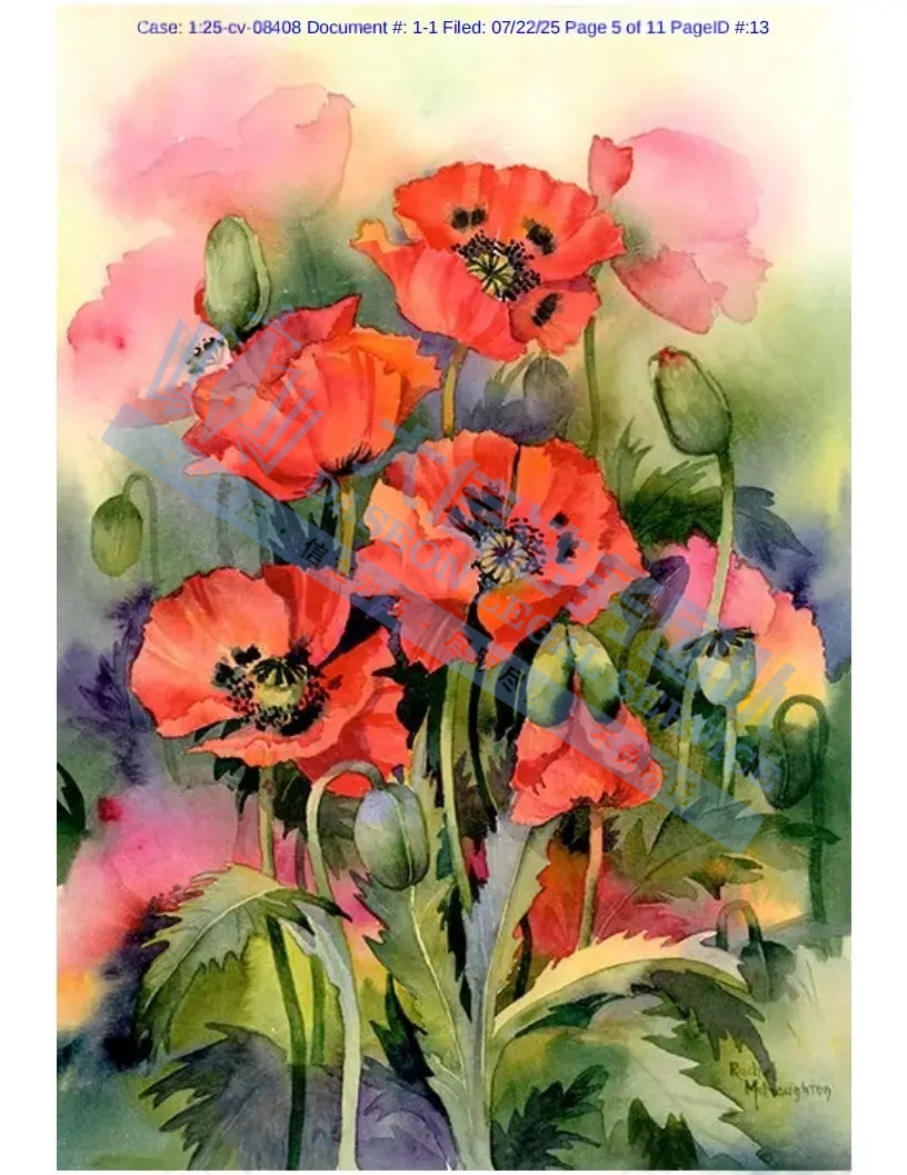 原告是一位来自英国的水彩艺术家,擅长以柔和细腻的笔触描绘自然世界中的花卉、动物与风景。其艺术风格兼具印象派、具象派和插画风格,作品曾被 National Trust、Graham and Brown、UNICEF、WHSmith等机构出版,还为 Tyndale Press、National Geographic、Igloo Books等出版的书籍担任插画师。她的作品清新灵动,色彩自然,常被应用于贺卡、家居装饰、文创产品等多个领域,深受大众喜爱。