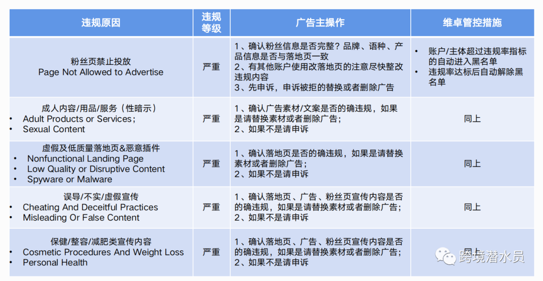 1、公共主页所对应的广告账户,曾反复尝试投放不符合Facebook政策的广告。
