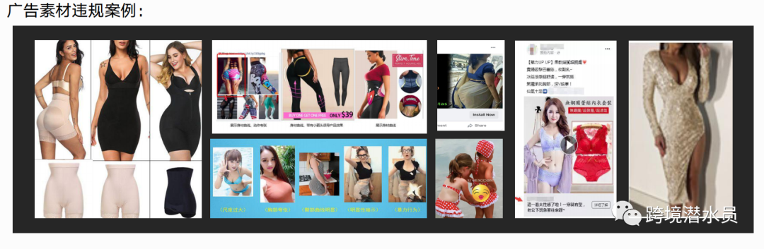 服装类别与身体的曲线和展示过于接近(泳装,内衣,高开叉裙,低胸裙,臀部裤,减肥衣,健身器材展示的身体等)。