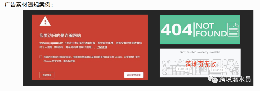 政策解读:广告不得将用户跳转至功能异常的落地页,包括阻挠用户离开页面的落地页内容。只要是用户无法进行访问的网站,都属于功能异常的落地页。