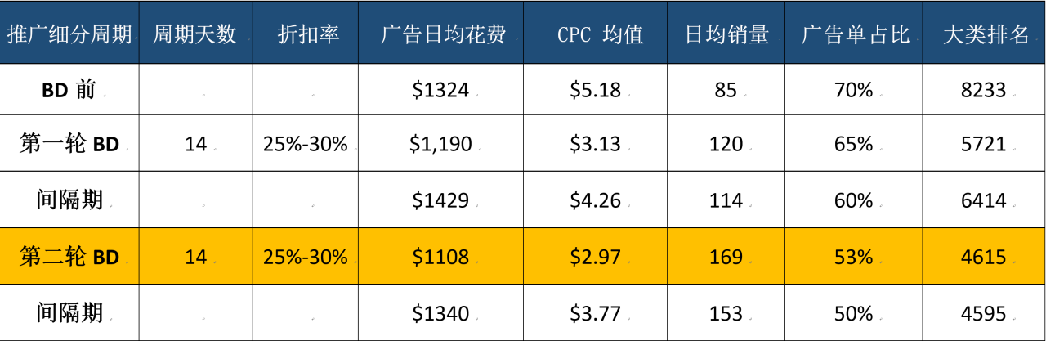 至此,通过跑密集的3轮BD活动,卖家实现了订单量的翻倍,广告订单占比降低,广告CPC降低,稳住市场排名获得较推广前更大的收益。