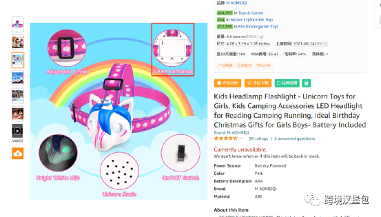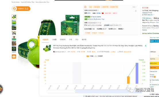 头灯已经是一个竞争挺激烈的类目,但是这群吃螃蟹的人从动物入手,把整个产品跟动物相结合,主打儿童人群带的头灯。看了一下几个listing的销售趋势,上架时间大概几个月前,销售趋势都在不断上涨。现在已经被占了的元素有猫头鹰、独角兽、青蛙、剑龙。其余的动物元素,花纹都可以是一个切入的方向,我感觉按照深圳卖家的开发速度可能之后会有其他新款出来。这种创意把平时常规的头灯和可爱的动物元素结合,是十分不错的创意。