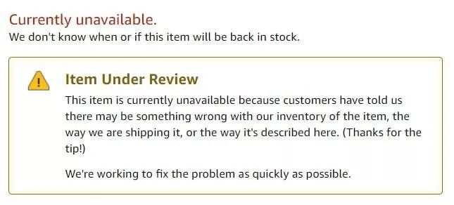 意思是说有买家反馈产品库存有问题,于是FBA限制了卖家该产品的销售权限,需要审核通过之后才能恢复正常。