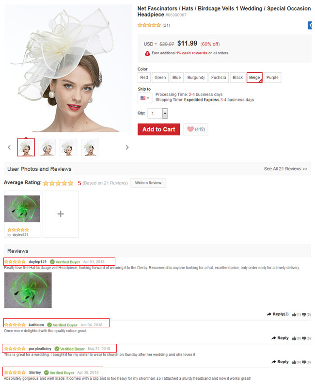 兰亭集势(Lightinthebox)为美国纽交所上市公司兰亭集势旗下的独立站。而在此网站中,薄纱帽是毕业礼物的最佳配饰精选,评论区好评如潮。