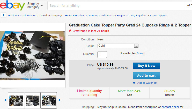 eBay则主打形形色色的毕业礼服雕像、极具创意的四方帽小饰品等,其中四方帽小饰品的出售量超过同款产品的54%,销量十分可观。