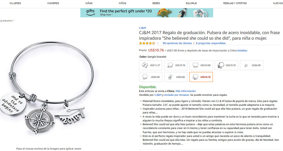 在亚马逊上,雨果网了解到雕刻有字母蕴含特殊意义的首饰品相对于普通的无刻字首饰品销量更可观,亚马逊大卖大雄对此表示:“兼具实用性和价值性的产品往往更受海外消费者的青睐,中国卖家在售卖服装、配饰品过程中,要学会透过产品本身去了解它所蕴含的延伸功能的价值。”他举例道,如毕业季,这个富有里程碑式纪念意义的节日里,定制该节日相关题材的首饰品来纪念的消费者自然不在少数。
