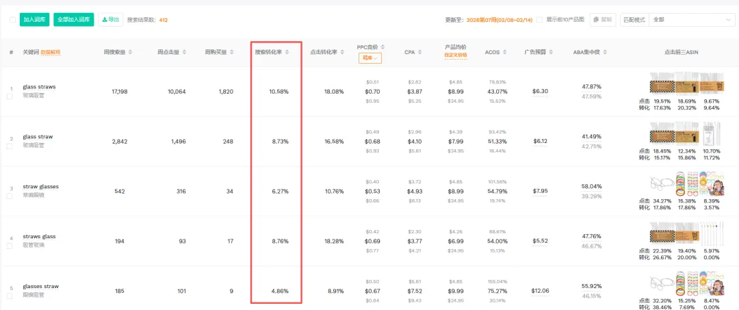 反过来,通过这套筛选逻辑,你会找到一批搜索量中等、搜索转化率稳定、CPA可控的词。这类词才是真正的精准流量入口,值得持续投入,逐步积累自然排名。