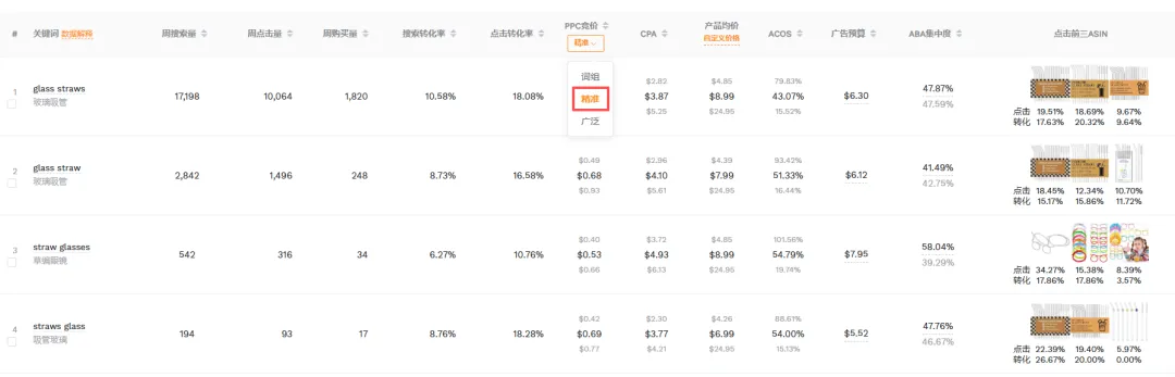 我现在看词,核心看的是点击转化率(CTR)和搜索转化率,同时结合不同匹配方式下的CPA和ACOS来做判断。这几个数据放在一起,才能看清楚一个词真正的健康度。