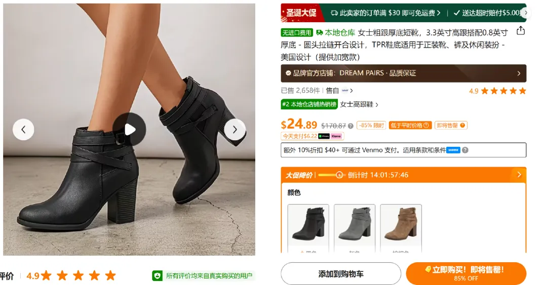 平台内,核心品牌Dream Pairs长期稳居亚马逊“时尚女鞋”品牌BS榜首,登顶高跟鞋、平底鞋及女靴等多个类目销量榜;