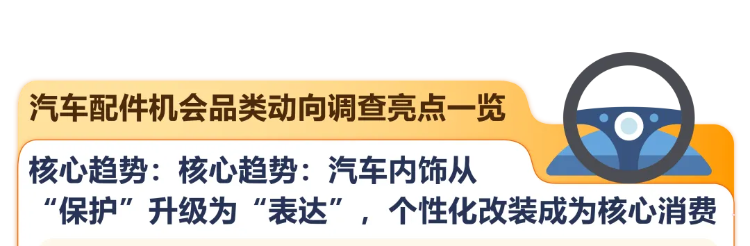对许多日本消费者而言,汽车已从一个单纯的代步工具,升级为每天度过数小时的“移动第三空间”。随着短途出行增加,消费者愈发愿意为提升车内环境的舒适、美观与清洁投资,推动防晒装备、个性化内饰等品类飞速增长。预计到 2033 年日本汽车配件市场规模将达到 144.6 亿美元,日本被认为是亚太地区增长最快的市场。按细分领域来看内饰配件(座椅套、脚垫、收纳用品)成为市场规模最大的产品类别11。