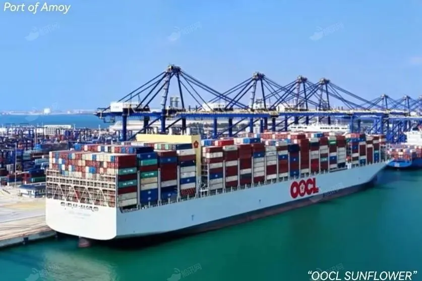 公开资料显示,“OOCL SUNFLOWER”号是一艘新建大型集装箱船,建于2025年,悬挂中国香港旗。该船长约366米,宽约51米,最大载箱量为16828TEU。