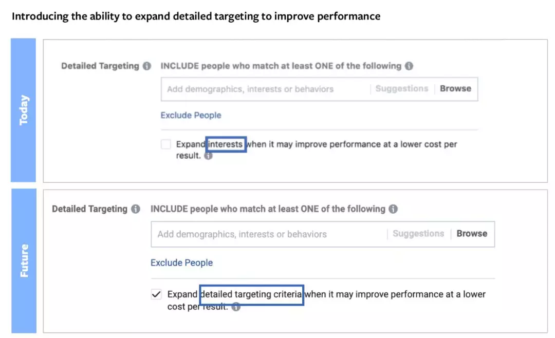 目前Facebook 为广告客户提供了一种选项,可以扩展其定位中使用的兴趣,从而以较低的每次搜索结果显示某些广告系列目标来提高其效果。从5月28日开始,Facebook将此功能从兴趣扩展到详细定位 - 包括行为和人口统计等内容。