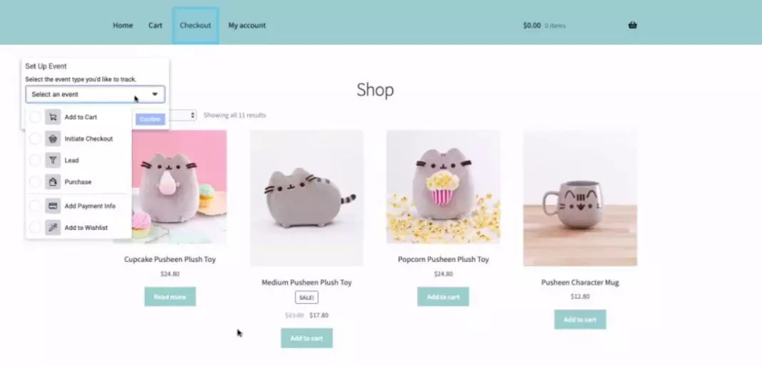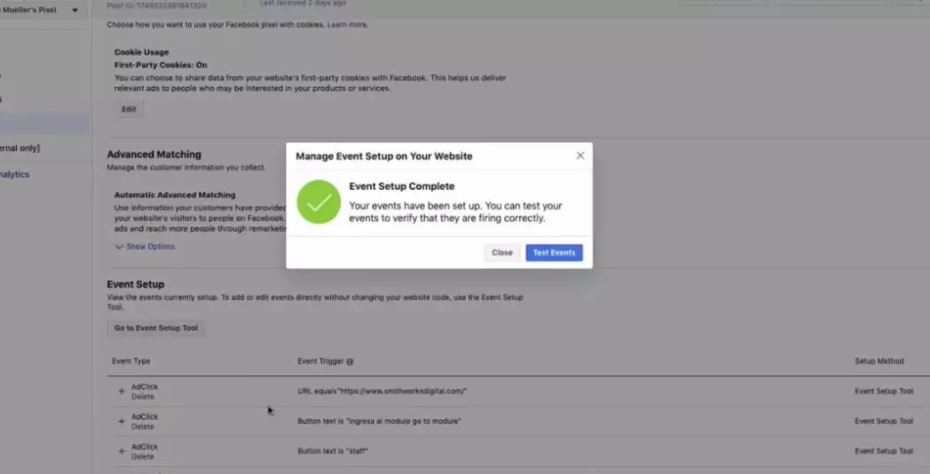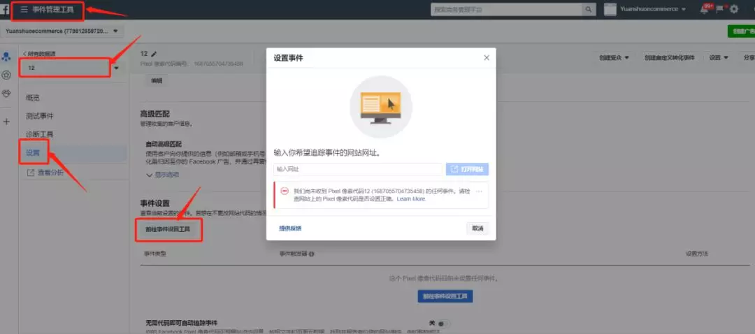 将事件设置工具连接到事件管理器时,将标准事件直接添加到其网站。