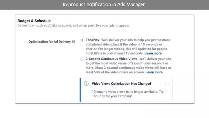 ThruPlay已替换10秒视频视图作为视频观看目标下的默认优化。(5月2日起到6月30日)
