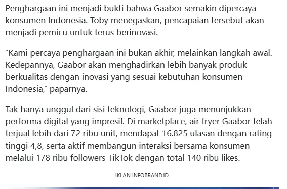与 GadgetMatch、INFOBRAND.ID 等东南亚头部科技与消费媒体合作,发布产品报道与奖项新闻; 借助平台活动背书,获得 “Shopee 年度最佳小家电品牌”“TikTok Shop 年度新锐品牌” 等荣誉。