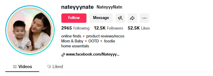 以菲律宾本土宝妈 + 家居美食达人 @nateyyynate 为例,YouTube 粉丝 12.5K,TikTok 同步运营,核心受众是 25-40 岁年轻家庭、女性消费决策者,与 Gaabor 的核心用户画像高度匹配。