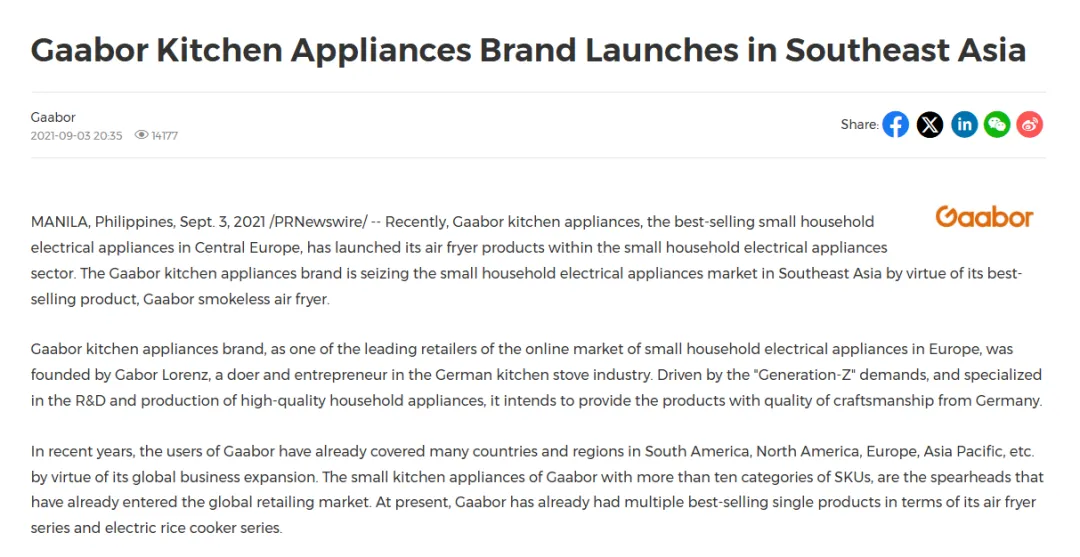 当多数国产小家电品牌扎堆欧美红海,陷入价格战与品牌认知战的双重困境时,一个名为 Gaabor 的新锐品牌却在东南亚市场异军突起。