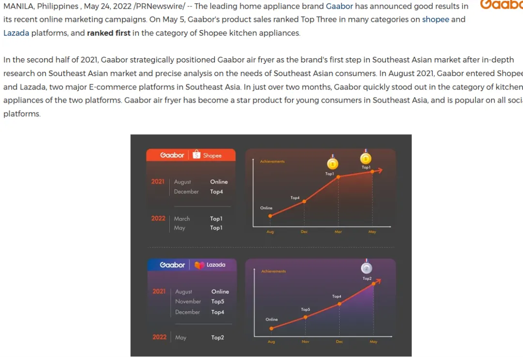 Gaabor 采用 “线上平台引爆 + 线下体验补位 + PR 背书加持” 的全渠道策略,既抓住了东南亚电商的流量红利,又通过线下渠道与 PR 传播逐步沉淀品牌资产。