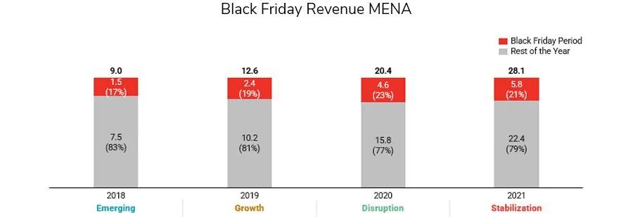 然而,黑色星期五的销售额增长将远低于去年,当时购物盛会的同比增长高达 90%,这是由于斋月销售期(受到供应链中断的影响)被压抑的需求大流行)在黑色星期五期间积极上演。
