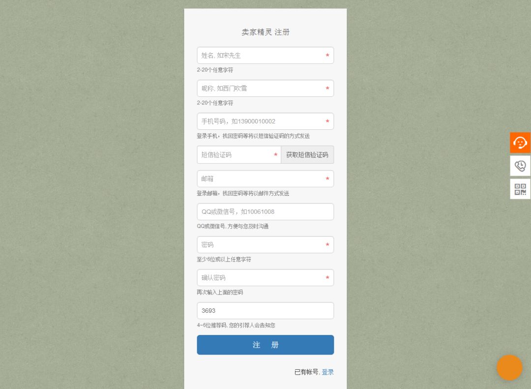 还有免费体验以及视频讲解,帮助大家更好地了解并使用卖家精灵。而它的注册也非常简单,只需完善基本信息即可完成注册。点击复制网址http://bjh.sellerspirit.cn就可以进行注册。