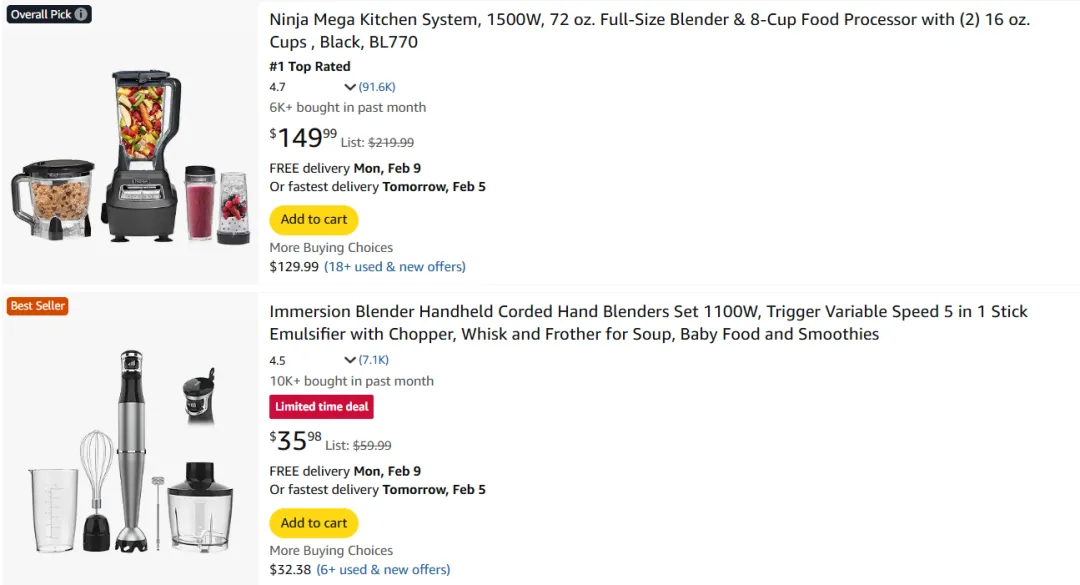 此外,在亚马逊美国站内,一款售价35.98美元的手持式有线搅拌机套装,上个月售出1万+单,月销售额超过35.98万美元(约等于人民币249.64万元)。