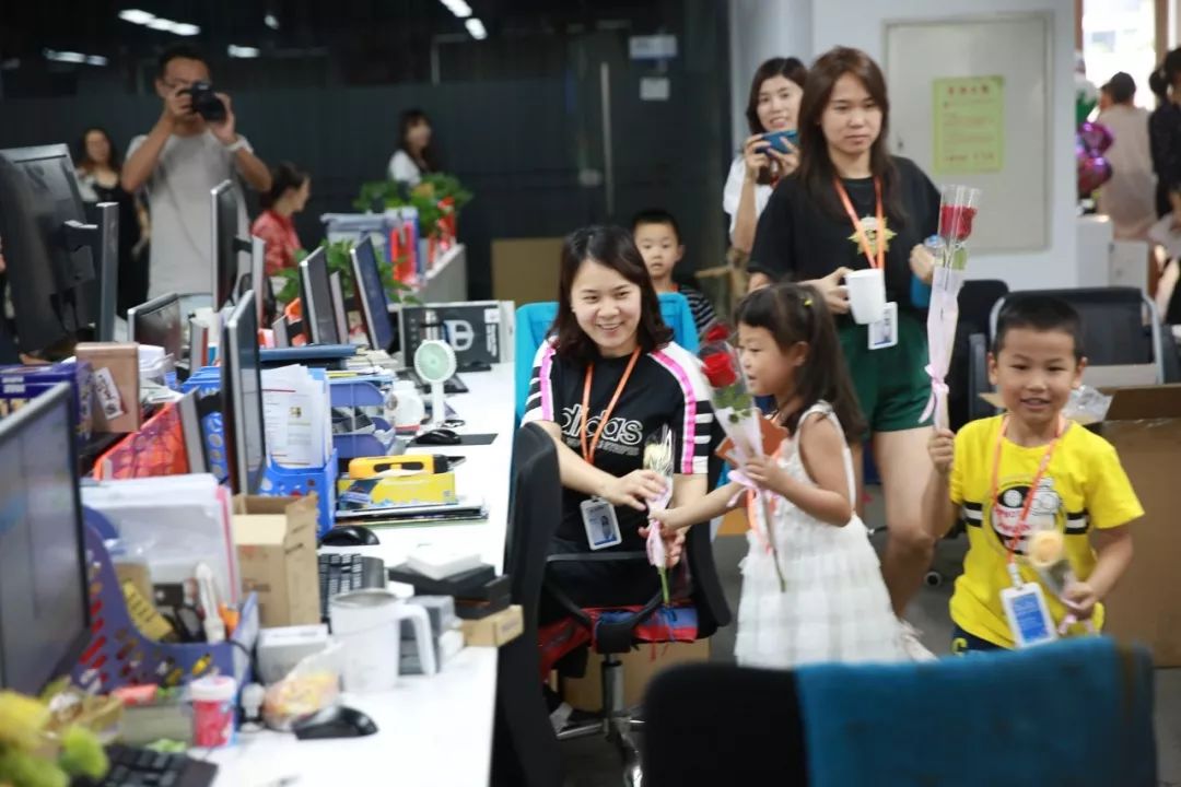 领到“任务”的爸妈们齐刷刷带着各自的娃,有秩序地排队参观公司。萌娃们穿梭在办公区,和叔叔阿姨,小哥哥小姐姐打招呼,场面极其激萌欢乐。