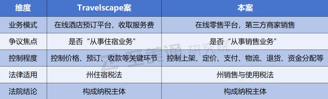 在Travelscape案中,法院认定Travelscape实质参与了住宿服务的销售过程,包括价格设定、预订确认、款项收取等,构成“从事住宿业务”,应承担纳税义务。该案确立了在判断纳税主体时,应关注其实际参与销售活动的程度,而非仅看其在交易中的名义身份。