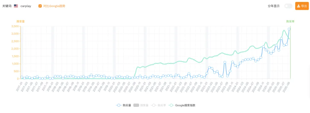 谷歌搜索趋势&购买量:逐年上涨