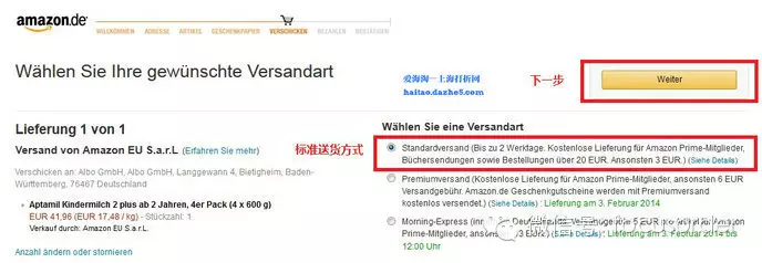 选择配送方式。通常情况下,我们都会选择第一个标准送货方式。