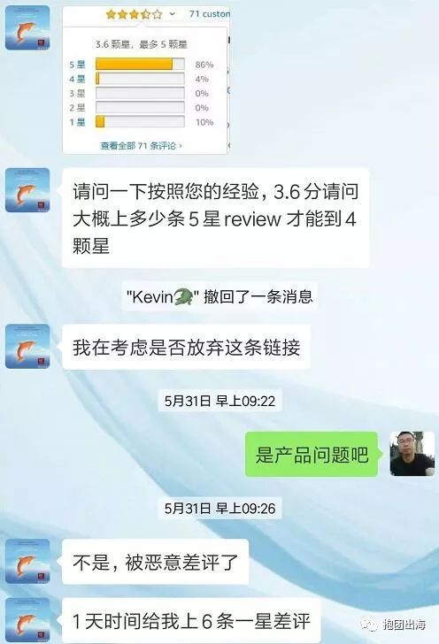 要知道,基数越大的情况下,拉星级越难,当初我以为对方是产品问题,所以打算叫他放弃,但从情况分析,明显是恶意差评的。