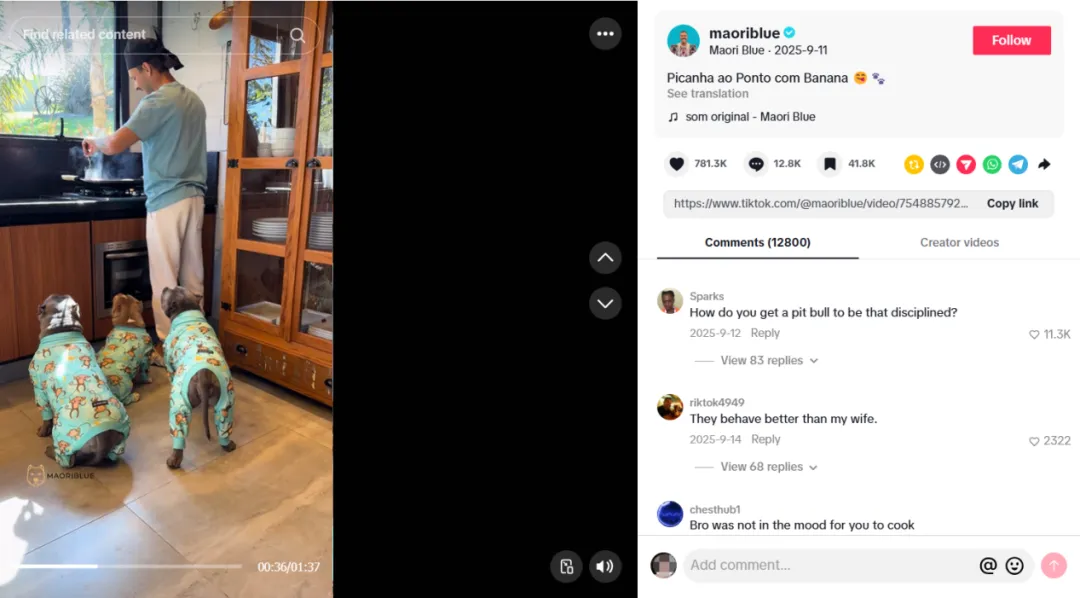 尤其在TikTok上,品牌大规模采用用户生成内容策略,放弃了传统精致的广告片风格。大量视频往往只是简单记录狗狗穿衣、玩耍、与主人互动的日常,却因真实自然引发强烈的情感共鸣。