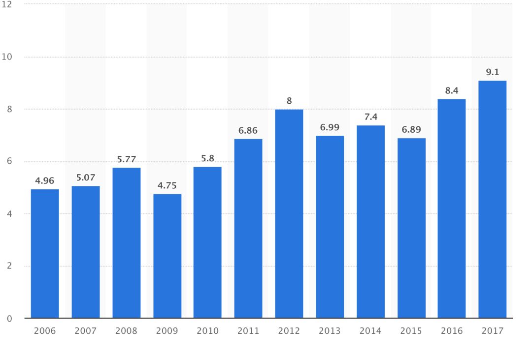2017年万圣节美国消费支出总额为91亿美元,来源:Statista