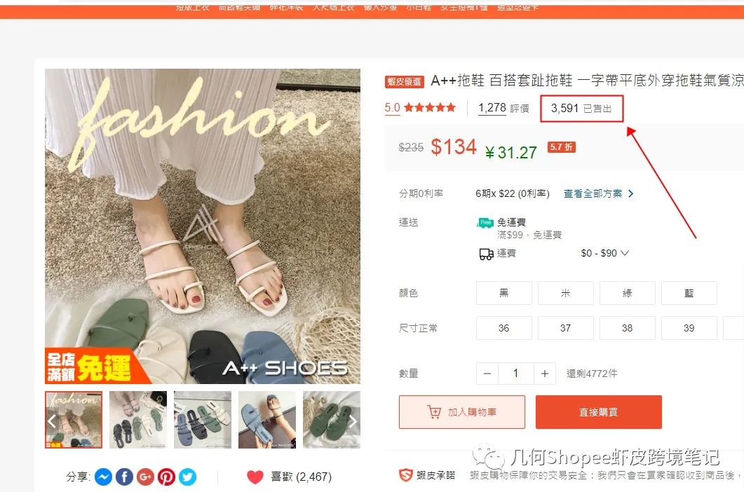 下面这个爆款拖鞋就是个很好的案例,我们也有进行上架这个款式,价格比它稍微低一些,上架后蹭了大概有一两百个订单,哈哈