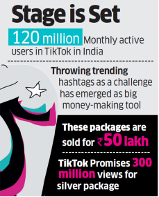 (图为TikTok在印度的宣传海报,其在印度的月活用户达到1.2亿,套餐售价500万卢比,约合27488万美元。TikTok承诺为投注白银套餐的品牌获取3亿次播放量;图源:economictimes.indiatimes.com)